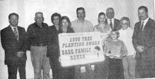 Gades started planting trees for livestock protection and wildlife habitat. They also feel the trees have greatly increased the value of the land, as well as creating a beautiful landscape for the ranch.  Greg’s father, the late Clinton Gade, and his wife Velma played an important role in making the establishment of trees possible.  Greg, Peggy, and their children are active members of the United Methodist Church in Lewellen.