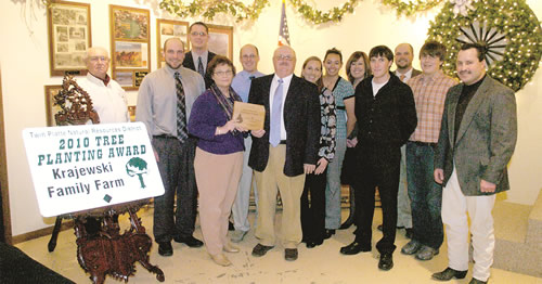 David Krajewski began planting trees for conservation in 1992, with his first 240 machine planted trees under the Twin Platte Natural Resources District Conservation Trees Program. Ten years later in 2002, David and the rest of the Krajewski Family Farms which includes his wife, Diane, and sons, Dan, Dustin, Dean, and Darin, once again planted trees under the Tree Program with another 3,852 machine planted trees. Since 2002, the farm has continued annual tree plantings through the NRD, NRCS, and FSA tree programs.